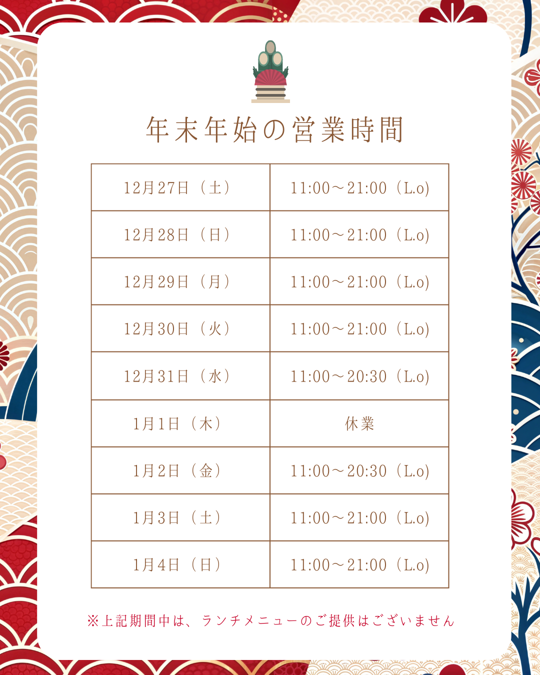年末年始のひとときに、ご家族でゆったりと美味しいお食事をお楽しみください。