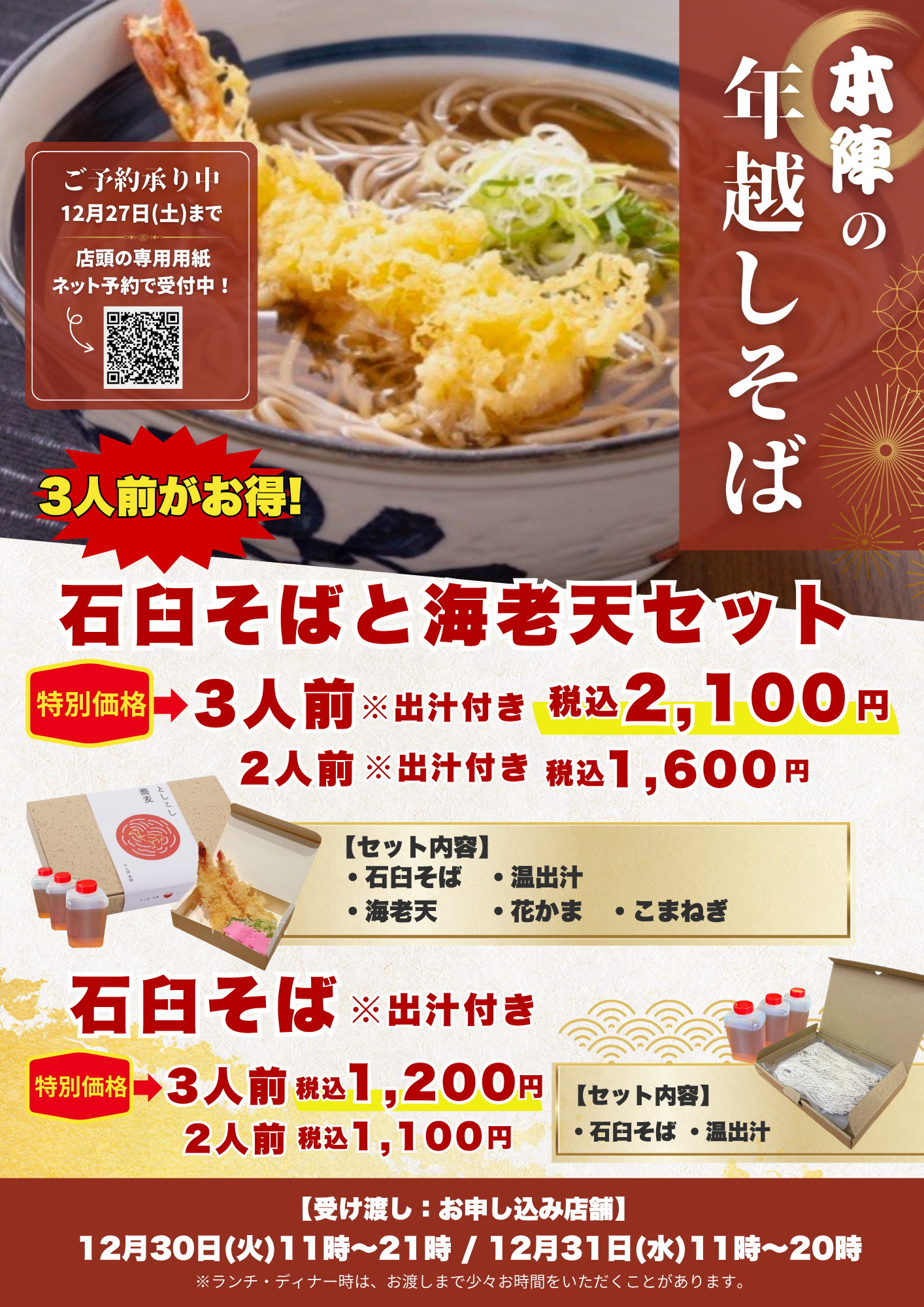 11/1(土)予約開始!本陣の年越しそば🥢🎍✨